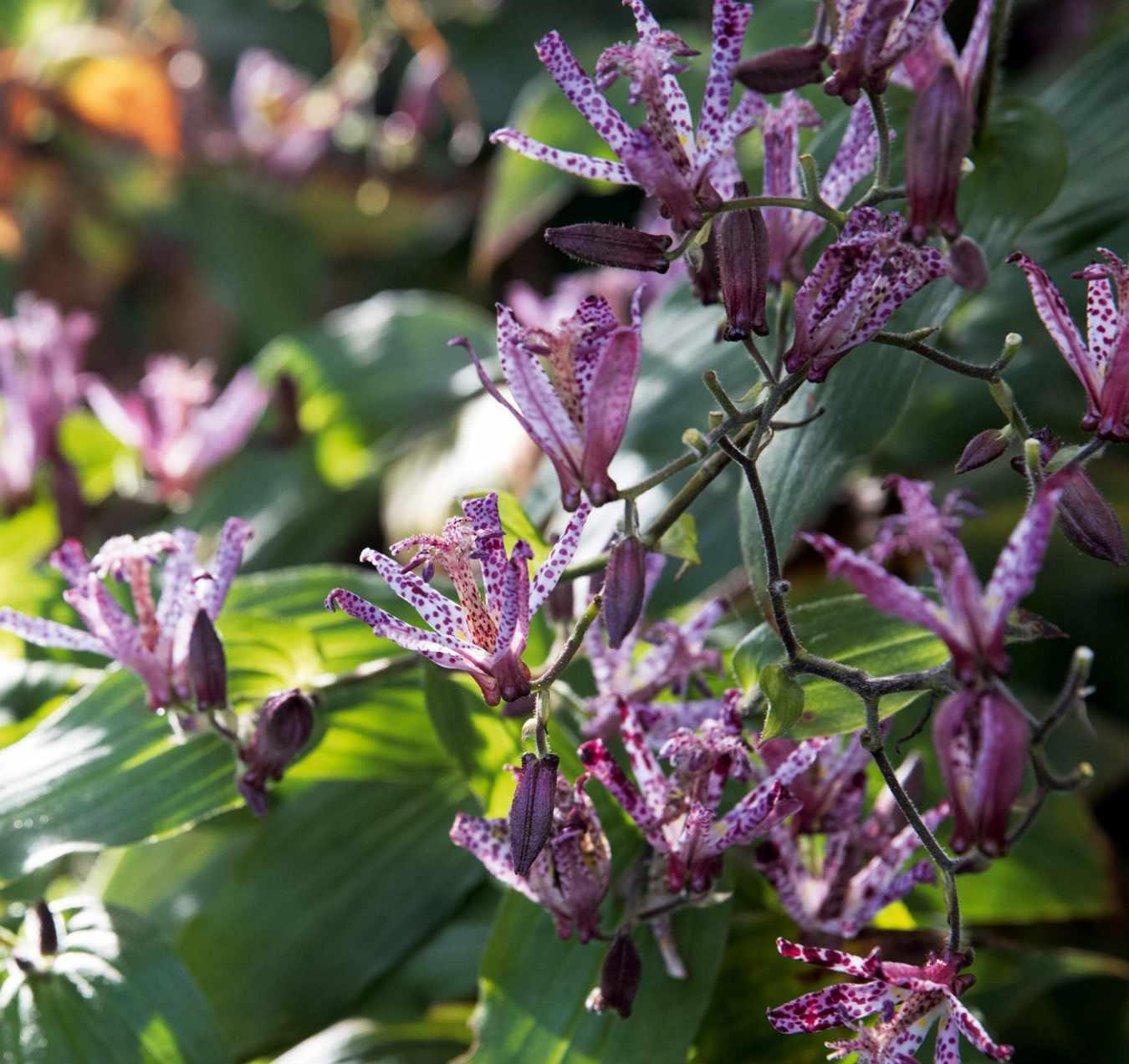 Quite how did a plant this beautiful, this delicate, this finely marked and this useful end up with the unalluring common name of toad lily? True, it is lilyish but I am stumped for the toad connection – except the mottling of the petals might be a bit toady? I love a toad for many reasons (not least its slug-devouring capabilities) but only its mother would appreciate its good looks!