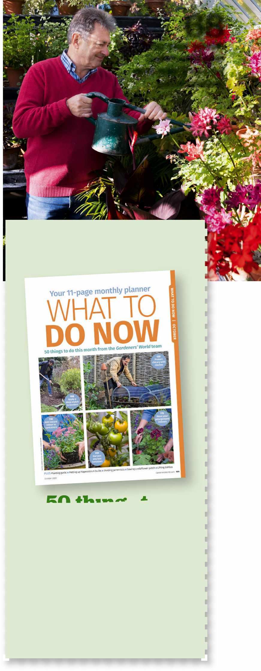 Autumn is also a wonderful time to get creative, and nowadays our social media feeds are a rich seam of inspiration, filled with carved pumpkins, decorated doorsteps and delicious recipes to make our mouths water. And you can find all of that in this issue – turn to p52 for Nick Bailey’s autumn container recipes, inspired by the colours of the season (and featured on our front cover), and on p44 discover Frances Tophill’s guide to using dried flowers for indoor displays that will last for months. We’ve also got a mouth-watering roasted squash recipe from Rukmini Iyer on p99, to make the most of your veg-plot bounty.