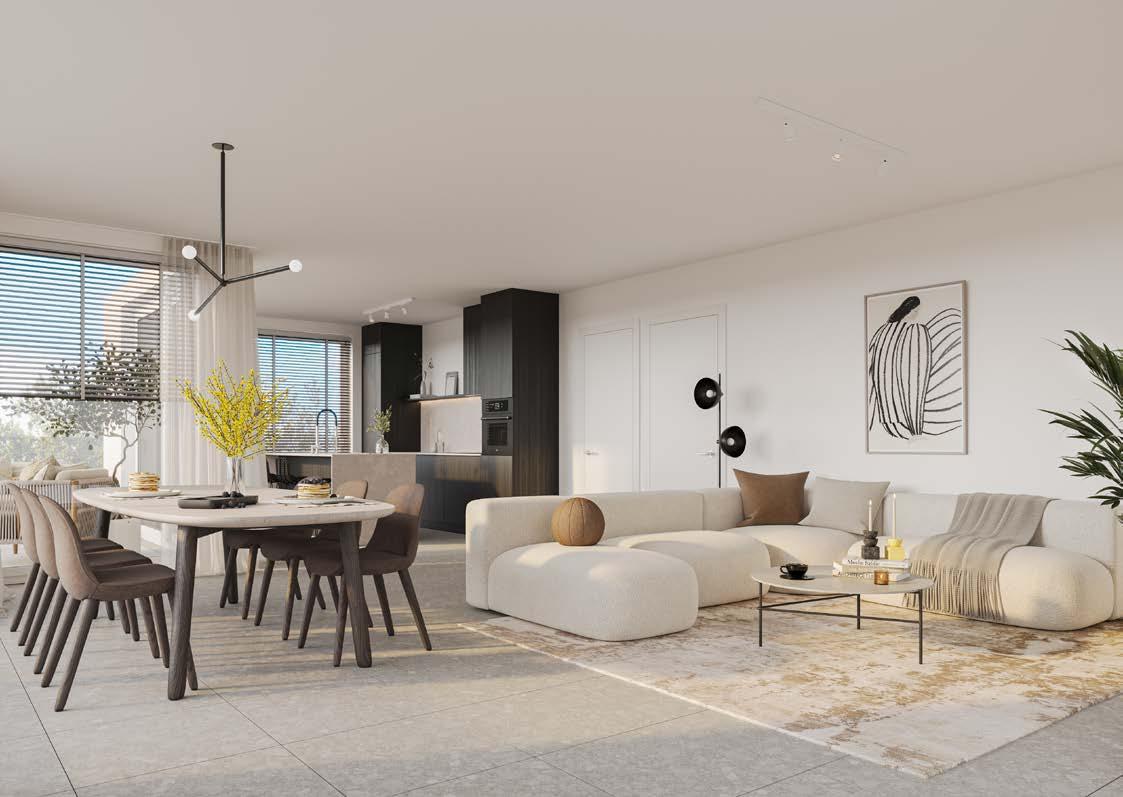 Het project omvat 11 energiezuinige appartementen en 2 fraaie duplexwoningen met tuin. Allemaal beschikken ze o.m. over een ruime lichtrijke woonkamer met ingerichte eilandkeuken en 1 tot 3 slaapkamers.