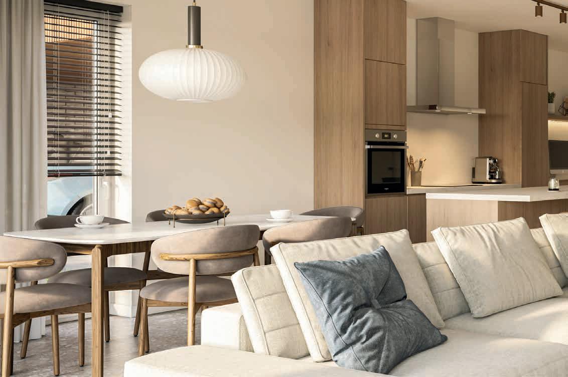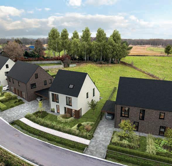 Praktisch ingedeelde ruimtes benutten de woonoppervlakte ten volle. De leefruimtes staan optimaal in verbinding met het terras en de zuid gerichte tuin. Elke woning heeft een ruime en lichtrijke woonkamer, een volledig ingerichte eilandkeuken en badkamer, ruime slaapkamers, een polyvalente zolderruimte, een carport én een mooi zicht op de velden.