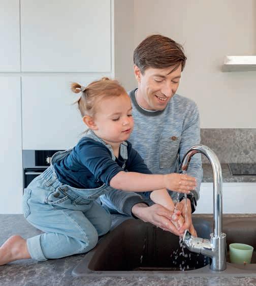 We bieden hen een totaalbeeld en leggen samen de volledige puzzel. “In onze kijkwoningen kunnen klanten het gezellige thuisgevoel ervaren, dat je zelf kan creëren voor een betaalbare prijs”, vult Katleen aan. “Daar kunnen ze de kwaliteit van de materialen en toestellen bekijken. Zo stellen ze vast dat compacter wonen niet per se een nadeel is.
