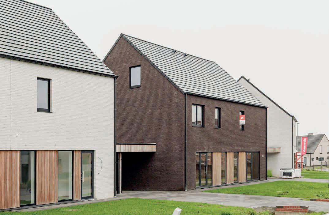 • Buitenspouwmuur (parement + tuinmuur) is een combinatie van de gevelstenen Elegance Nero WF (lot 3, 4, 6, 7)) en Karma White HV WF (lot 1, 2, 5), halfsteensverband, klassiek gevoegd.