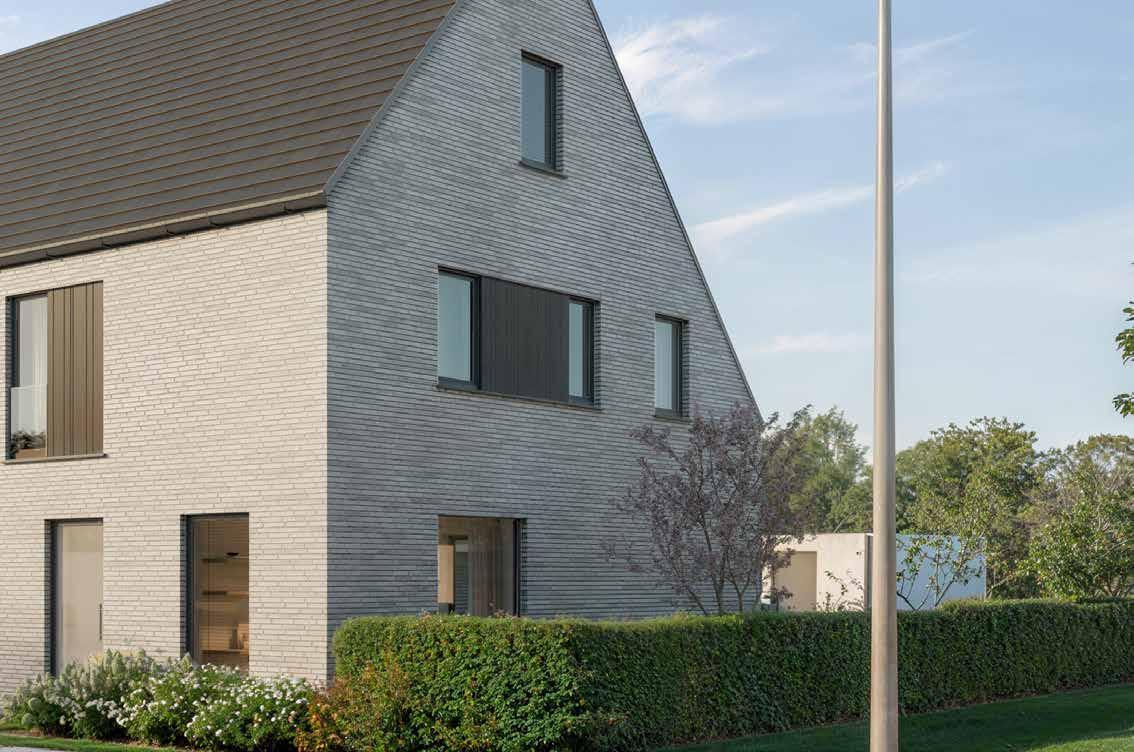 • Buitenspouwmuur (parement + tuinmuur) is een combinatie van de gevelstenen Linnaeus Lichtgrijs wit basaltgrijs TW-L (Wienerberger) en Evolution Pollok (Olivier Bricks).