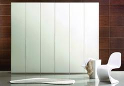 En los dormitorios se va a realizar un frente de armario con puertas lisas y abatibles, lacadas en blanco y revestido interiormente con melamina acabado en color blanco, con balda maletero y barra de colgar.