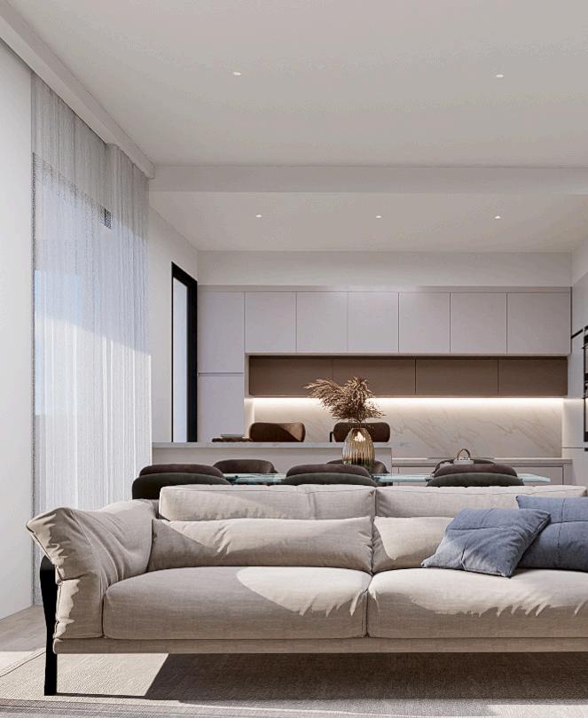 Las zonas comunitarias han sido concebidas con un cuidado especial. Los interiores contarán con pavimentos de baldosa cerámica y paredes revestidas con materiales seleccionados según cada ambiente, creando espacios armoniosos y duraderos.