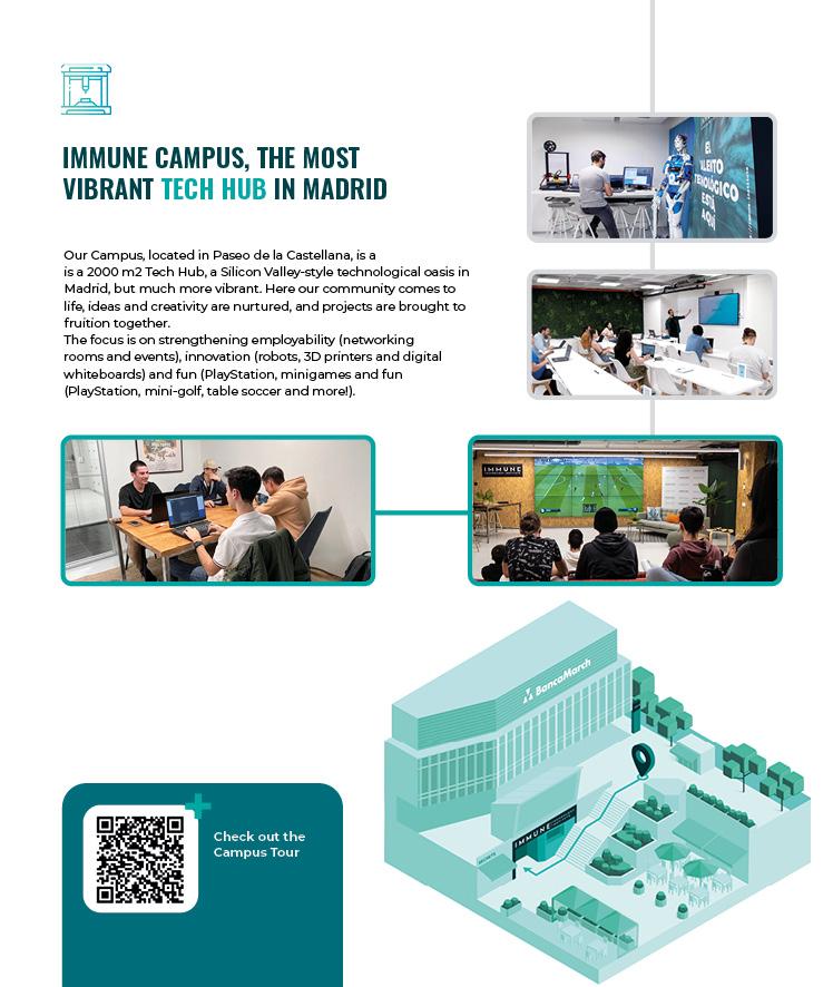 You will discover our campus on Paseo de la Castellana, next to the Santiago Bernabéu Stadium, where you can network with professionals in the sector.