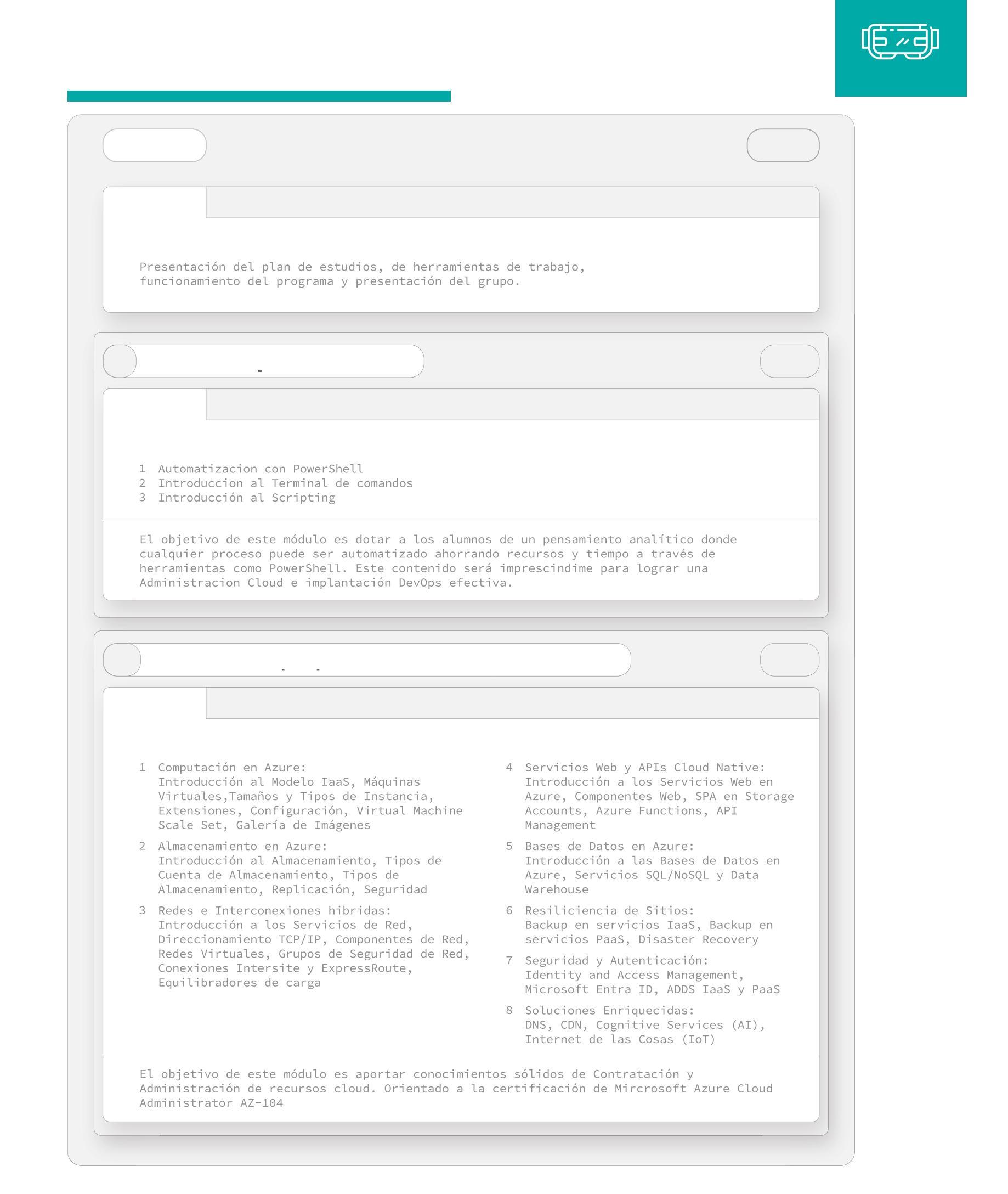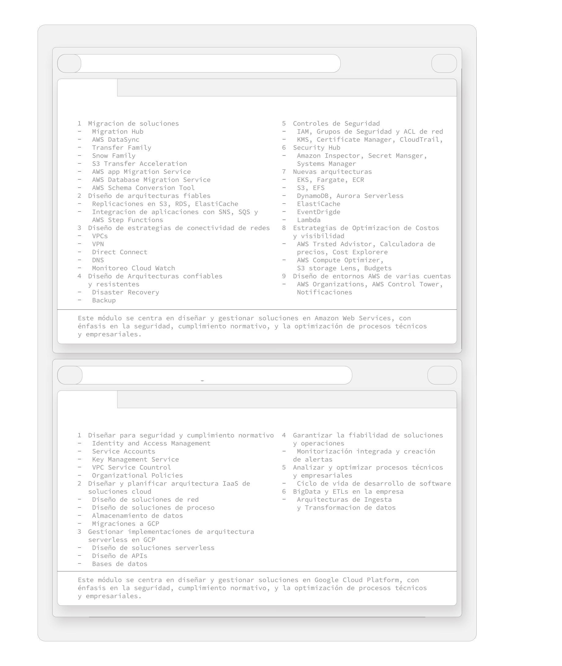 (Systems,Administration,On-premise/localArchitecture,Backups)experiencedprofessionals lookingtoretrainorupdatethemselvesinthelatestCloudtechnologies,eithertoimproveworking conditions,toexpandtheirknowledgeandthushelpthecompanyortolookforanewjob.Alsoin chargeofsolutionimplementationandmigrations(replatforming).Architecturesformultipleoffices, multi-cloudordistributedsystems.