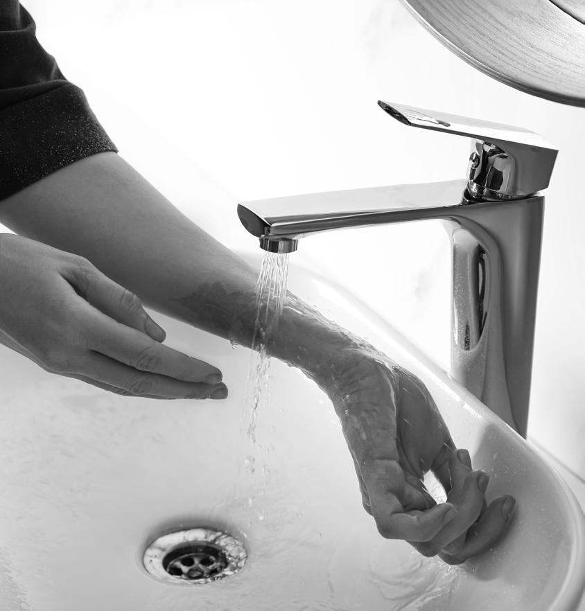 • Open the casualty’s airway by placing one hand on the forehead and using two fingers to lift the chin.