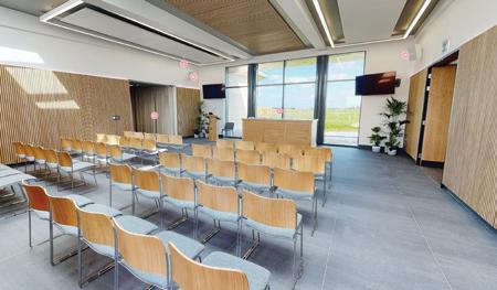TWO SERVICE HALLS with a built-in media system bringing music, photos, video and state-of-the-art lighting to the service