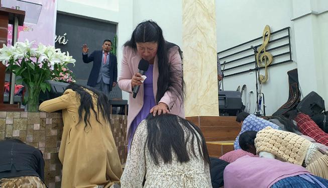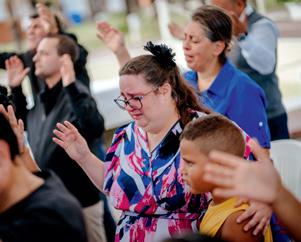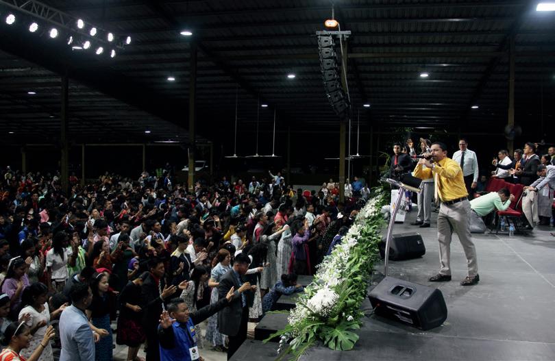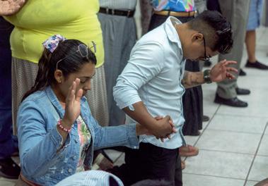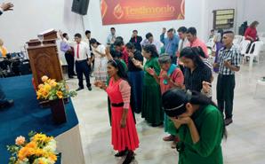 yentes y por un nutrido grupo de niños y adolescentes, quienes participan frecuentemente en los cultos.