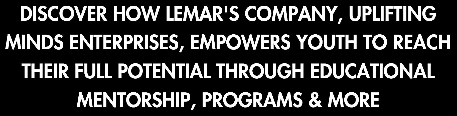Lemar offers a wide range of programs, products and services ---from books, relationship coaching and uplifting consulting As a foundation for all that he offers, he established Uplifting Minds Enterprise Whether it’s public speaking, guidance counseling, or mentoring youth, Lemar remains flexible in how he fulfills his mission.