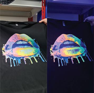 ere is the obvious di erence of course, a glow in the dark garment created using neon inks will make you stand out in a nightclub or other destination where black light (UV light) is being used.