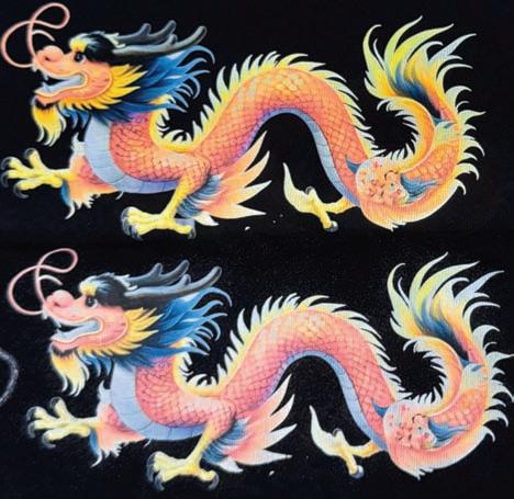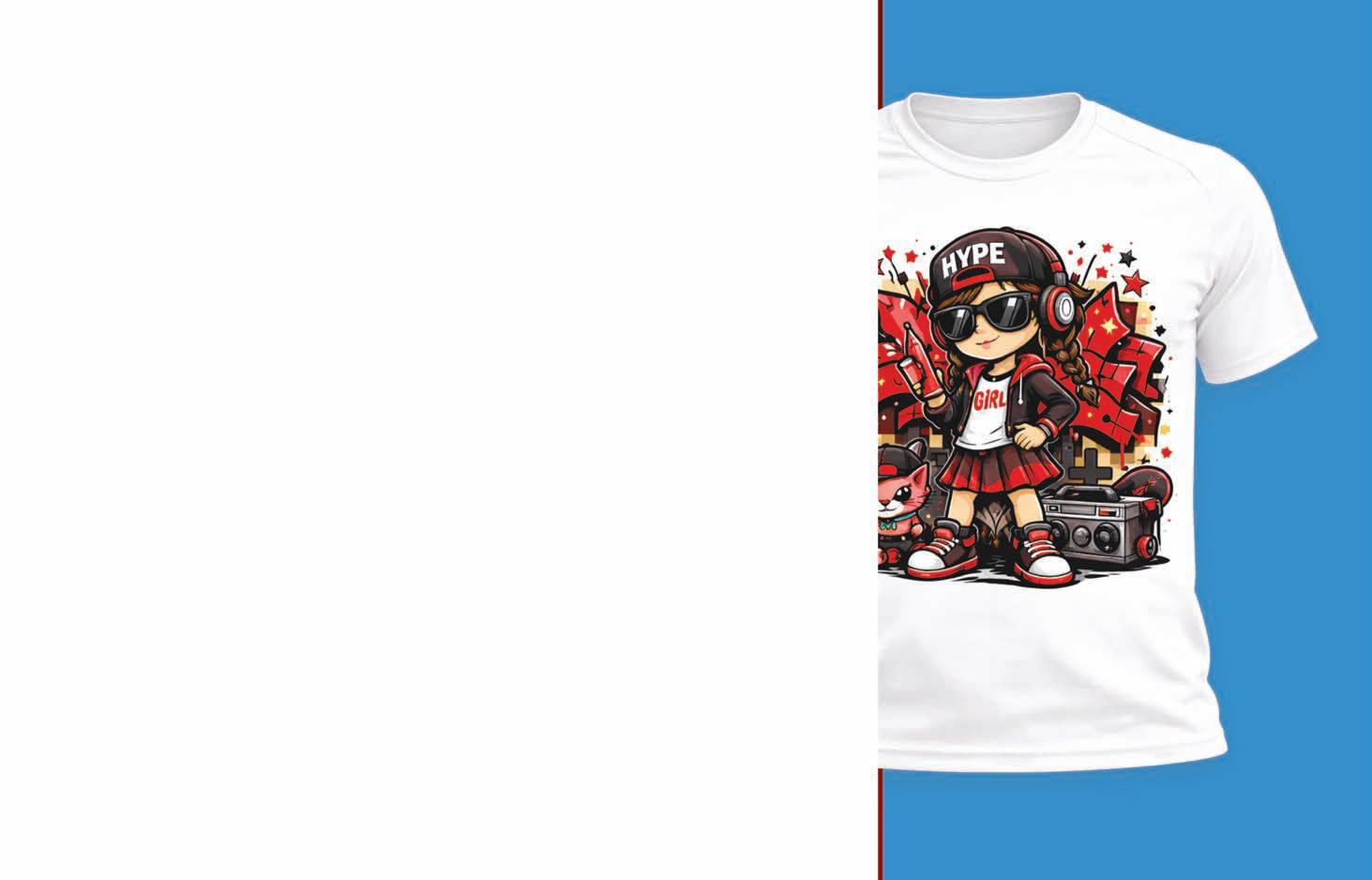 Within a year, the DTF evolution saw vendors launching systems with 3-4 printheads. Most promoted this purely as a speed enhancement bene t. However, the extra printheads also opened up a new opportunity to go beyond CMYK and W printing, with vendors able to dedicate an entire head or certain channels to new ink colours. Some added light magenta or cyan to improve hal one ll quality. However, most went down the route of expanding the colour space with standard spot colours, and some went even further and introduced neon ink.