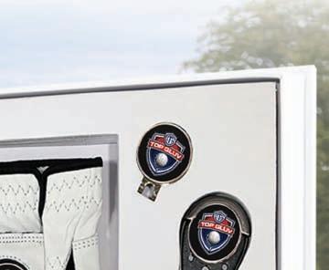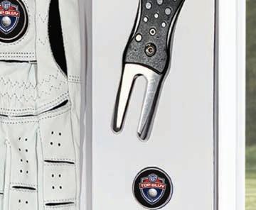 The Presidential Golf Gift Set is an ideal way to connect your brand with the high-end game of golf. Your logo is a detachable magnetic ball marker on all items in the custom-branded magnetic closure gift box. This VIP Gift Set includes: a premium Spyglass Cabretta leather golf glove; a Eurofix retractable divot repair tool; a Chromeplated hat clip, and a set of 6 custom logo ball markers. For more information visit thecsigroup.net/topgluv or contact orest@thecsigroup.net