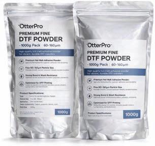 The OtterPro™ Premium DTF Powder is a high-quality hot melt adhesive powder engineered to deliver superior bonding and long-lasting durability in direct-to-film (DTF) printing. Featuring a finer 60–160µm powder size, it is specially formulated for use with DTF transfer films, providing smooth, even coverage and reliable curing for consistent, professional production results. This 1000g pack supports producing vibrant, durable transfers on a wide range of fabrics including cotton, polyester, blends, and nylon. For details, please visit www.jotoimagingsupplies.ca
