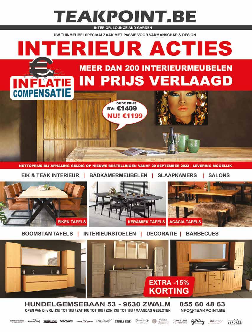 36 ETALAGE deluxe Oudenaarde Zingem - Asper - Gavere 055/31.11.33 - 09/384.74.11 www.uitvaartmetstijl.be BVBA VERHEECKE FREDDY & BENNY REGEN OF VOGELS IN DE SCHOUW ? SCHOUWKAPPEN INOX OF KOPER 0476/41.17.27 www.bennyverheecke.be Oost- en West-Vlaanderen > 7 op 7 bereikbaar GEEN TRANSPORTKOSTEN ! Plaatsing door zaakvoerder ✂ GRATIS INOX ROOSTER VRIJBLIJVENDE OFFERTE (tegen vogelnesten) geldig in oktober 2023 Enkel geldig bij plaatsing van een kap. Niet cumuleerbaar met andere acties. Uitvaart V an den Abeele V an den Abeele Uitvaartverzorging Dorpsstraat 77 - 9800 Deinze • Drapstraat 90B - 9810 Nazareth GSM: 0478 23 79 96 • www.uitvaartverzorgingvandenabeele.be Wij gedenken Wij danken de families voor hun vertrouwen en wensen hen veel sterkte toe. Georgetta De Clercq 1929 - 2023 Christina Boone 1932 - 2023