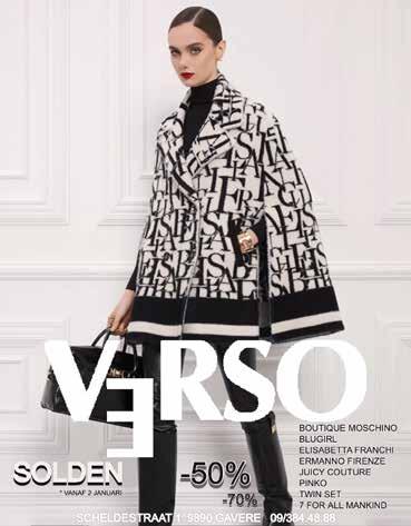 5 RUIME PARKING SUPERSOLDEN * *geldig vanaf dinsdag 3 januari REJEANNE DAMES • HEREN • JEUGD Stationsstraat 153 | 9890 Gavere | Tel. 09 384 16 96 | www.rejeanne.be Open: dinsdag t.e.m. zaterdag 9u30 tot 12u30 & 13u30 - 18u. Zondag 10u tot 12u, maandag gesloten Zondag 1/1 zijn we uitzonderlijk gesloten -30% -40% -70% -50% Gavere - Semmerzake | facebook/schoenenfami | instagram/schoenenfami voor alle voeten én steunzolen SCHOENENFAMI herenschoenen tot 70% Dorpstraat 66 | 9890 Gavere - Semmerzake | facebook/schoenenfami | instagram/schoenenfami Di. tot vr.: open van 9 tot 12 en van 14 tot 18 | zaterdag: 10 tot 12.30 en van 13.30 tot 18 | zondag en maandag gesloten schoenen voor alle voeten én steunzolen 10%* korting o.v.vbon SCHOENENFAMI SOLDEN ALLE KINDERSCHOENEN 30€ PER PAAR bij aankoop van 2 paar 25€ PER PAAR *bij aankoop van schoenen krijg je een waardebon van 10% voor een volgende aankoop van schoenen wegens stopzetting van de kinderschoenen Dames- en herenschoenen tot 70% korting SOLDEN ALLE KINDERSCHOENEN €30 PER PAAR bij aankoop van 2 paar €25 PER PAAR wegens stopzetting van de kinderschoenen DAMES- EN HERENSCHOENEN tot 70% korting % % %