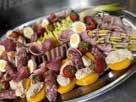 Gourmet: biefstuk, chipolata, kalkoensnitzel, sateetje, boomstam, cordon bleu, drumsteak varkenshaasje met spek blinde vink en gyros (Inclusief 3 sausjes) €12 00/p p