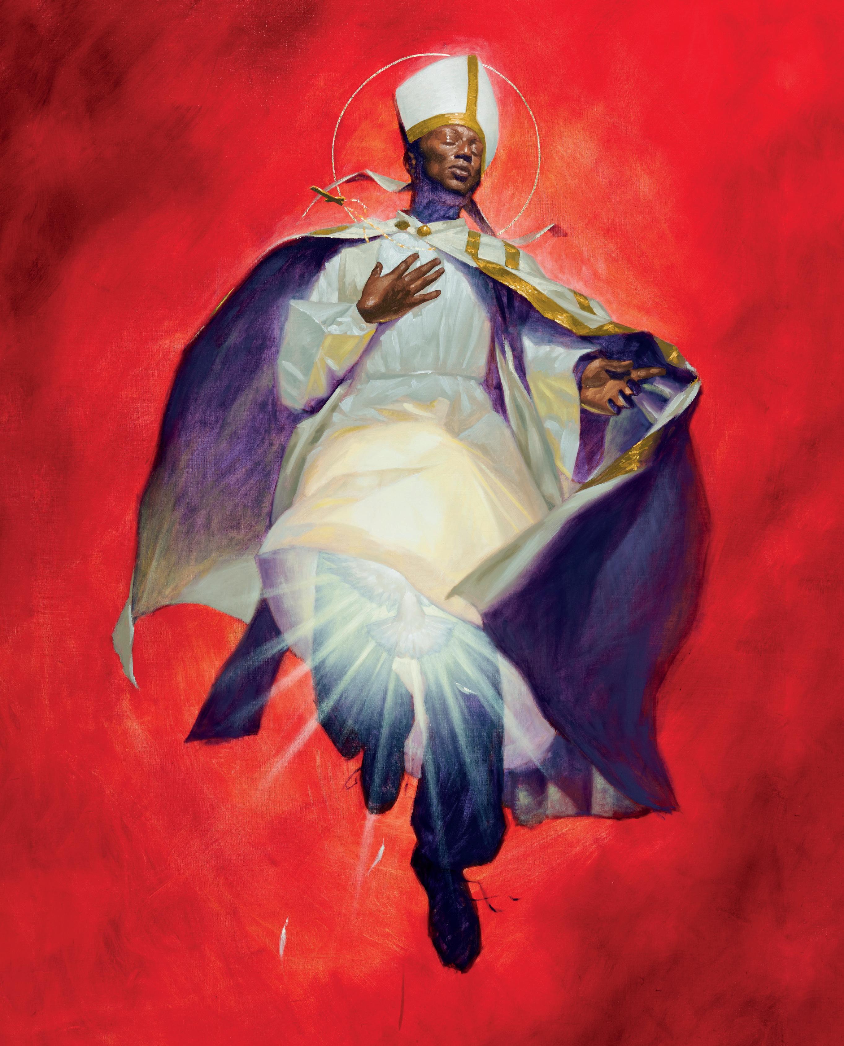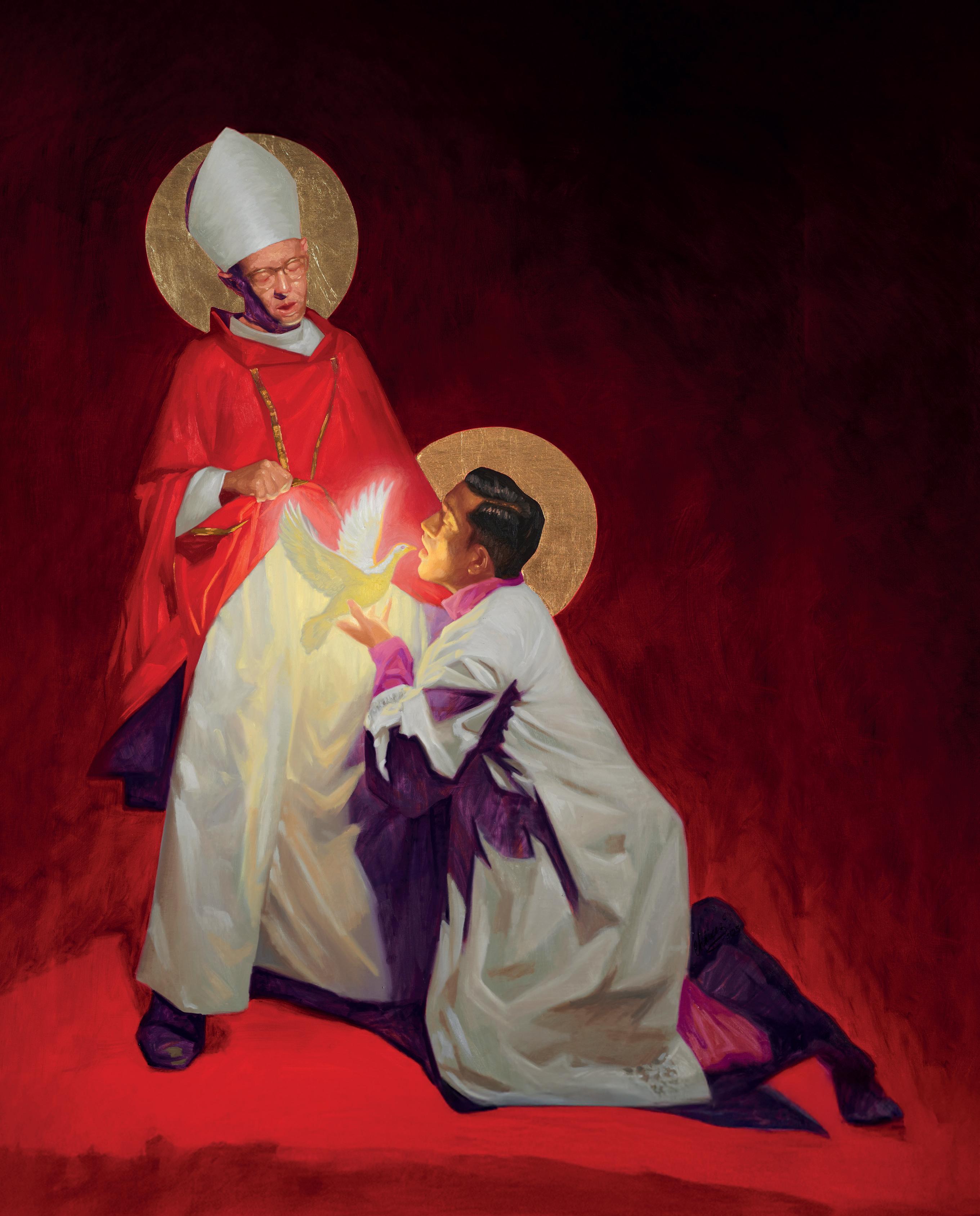 ¿Cuál es el verdadero rostro del placer? Fabián Cháirez nos acerca a la respuesta al mantener en estos nueve óleos un diálogo con el éxtasis, así como antes lo hizo Gian Lorenzo Bernini con su “Éxtasis de Santa Teresa” (1652) o William Bouguereau en la “Piedad” (1876). Éxtasis religioso y a la vez erótico confluidos en estas piezas. Y es que en el erotismo tienen cabida los afectos, el cariño, la ternura, la devoción, la pasión. En La Segunda Venida del Señor no encontraremos imágenes agresivas, sino amorosas. Cháirez subvierte el imaginario clerical para retratar a través de estas piezas escenas amorosas y gozosas que, aunque señaladas, existen en la sociedad, humaniza a quienes durante siglos la iglesia ha querido deshumanizar: por un lado a la comunidad LGBTQ+; por el otro, a los personajes del santo oficio, y lo hace con la destreza técnica que lo caracteriza.