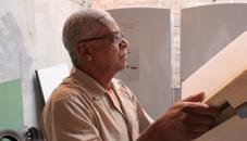 quando foge aos limites do campo. As mãos do maestro perpassam, velozes, o quadro, perdendo seus contornos, sem perder, contudo, sua força. O artista parece, inclusive, atento ao poder suges tivo da perda de foco, que instiga um envolvimento háptico, antes que visual, com a imagem.