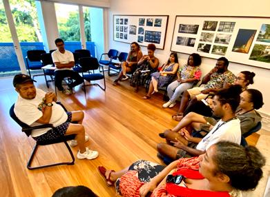Jamal Dutra apresenta trabalho para grupo de curadores internacionais. Foto: Francisco Valdean.
