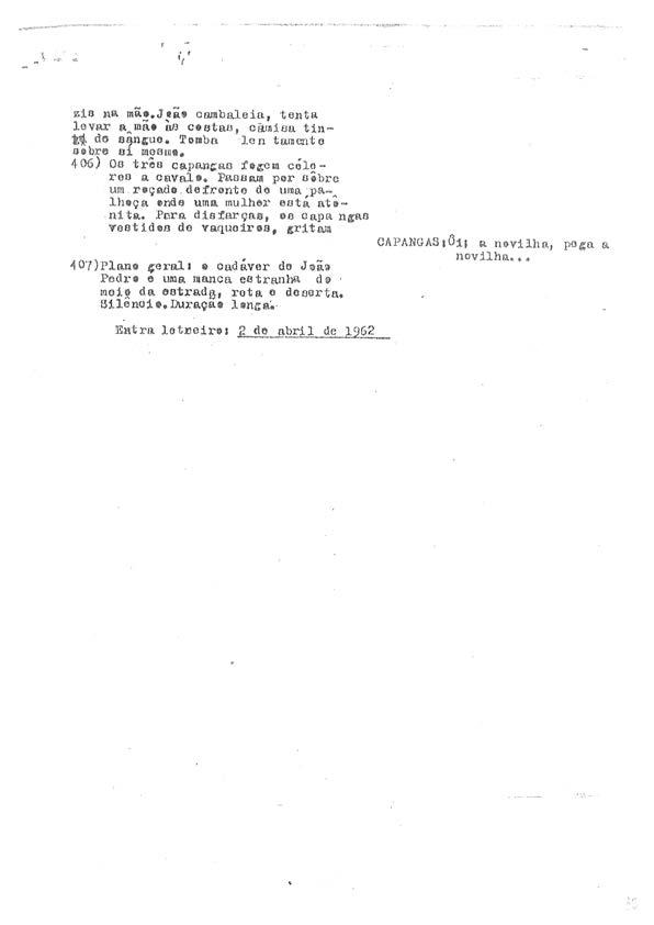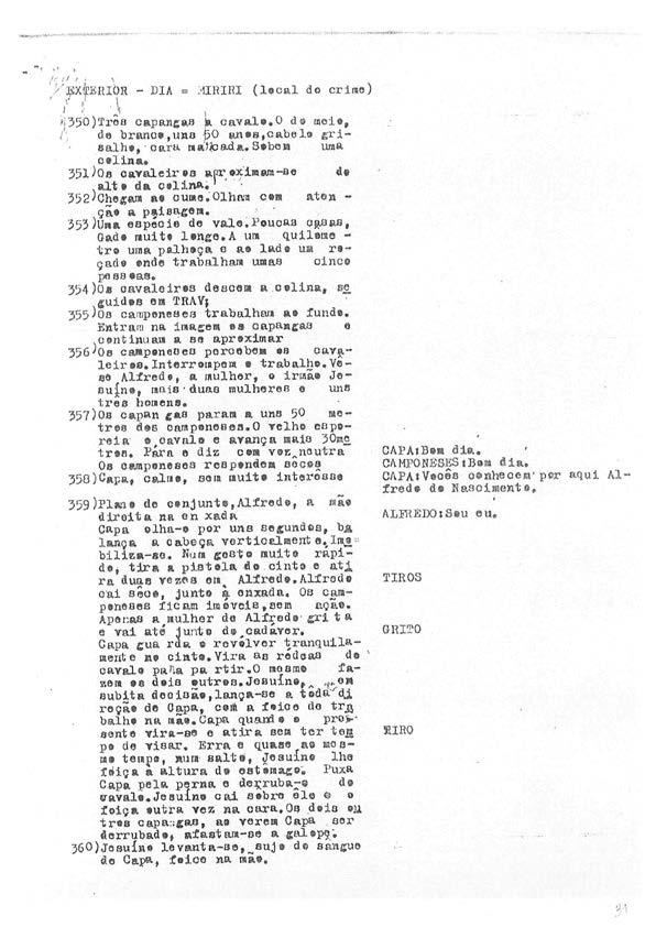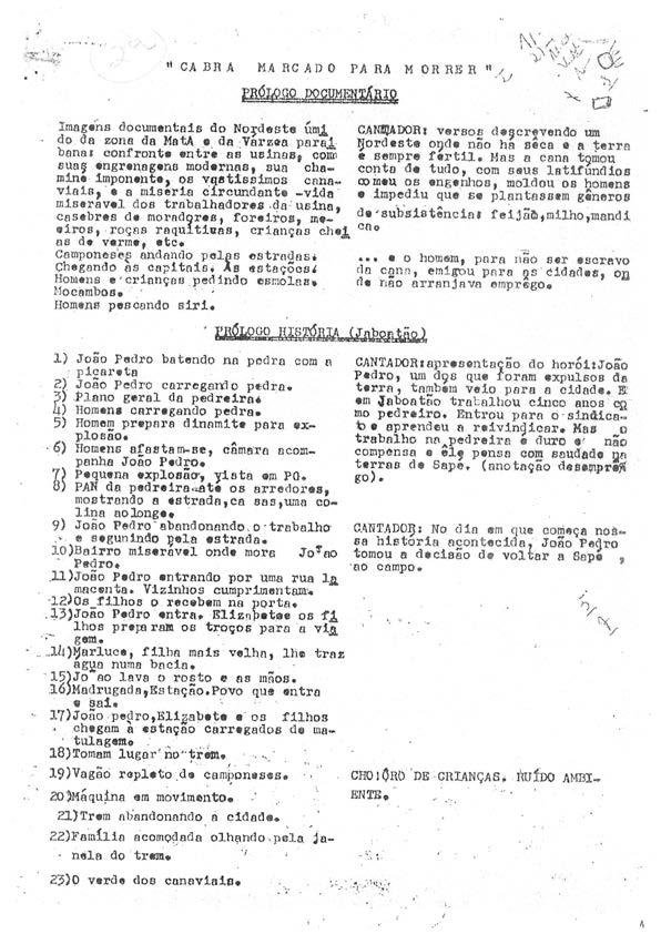 A essa altura, Coutinho já dispunha de um roteiro mais desenvolvido, com 37 páginas datilografadas e o título “Cabra marcado para morrer” — é o que veremos a seguir, a partir de um exemplar recuperado pelo diretor cerca de dois anos