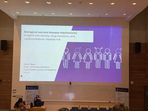 This year’s keynote speaker was Dr. Karen Reue, a distinguished professor in the Department of Human Genetics at the University of California, Los Angeles. Dr. Reue delivered a compelling lecture on biological sex and disease mechanisms in obesity, drug reactions, and cardiometabolic disease risk. Her research challenges the long-held assumption that sex chromosomes serve only to direct reproductive development. While these developmental roles are essential, she explained that sex chromosomes are also involved in more intricate processes within every cell of the human body and throughout the lifespan.