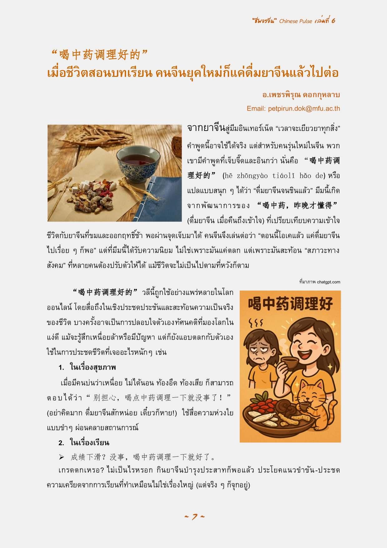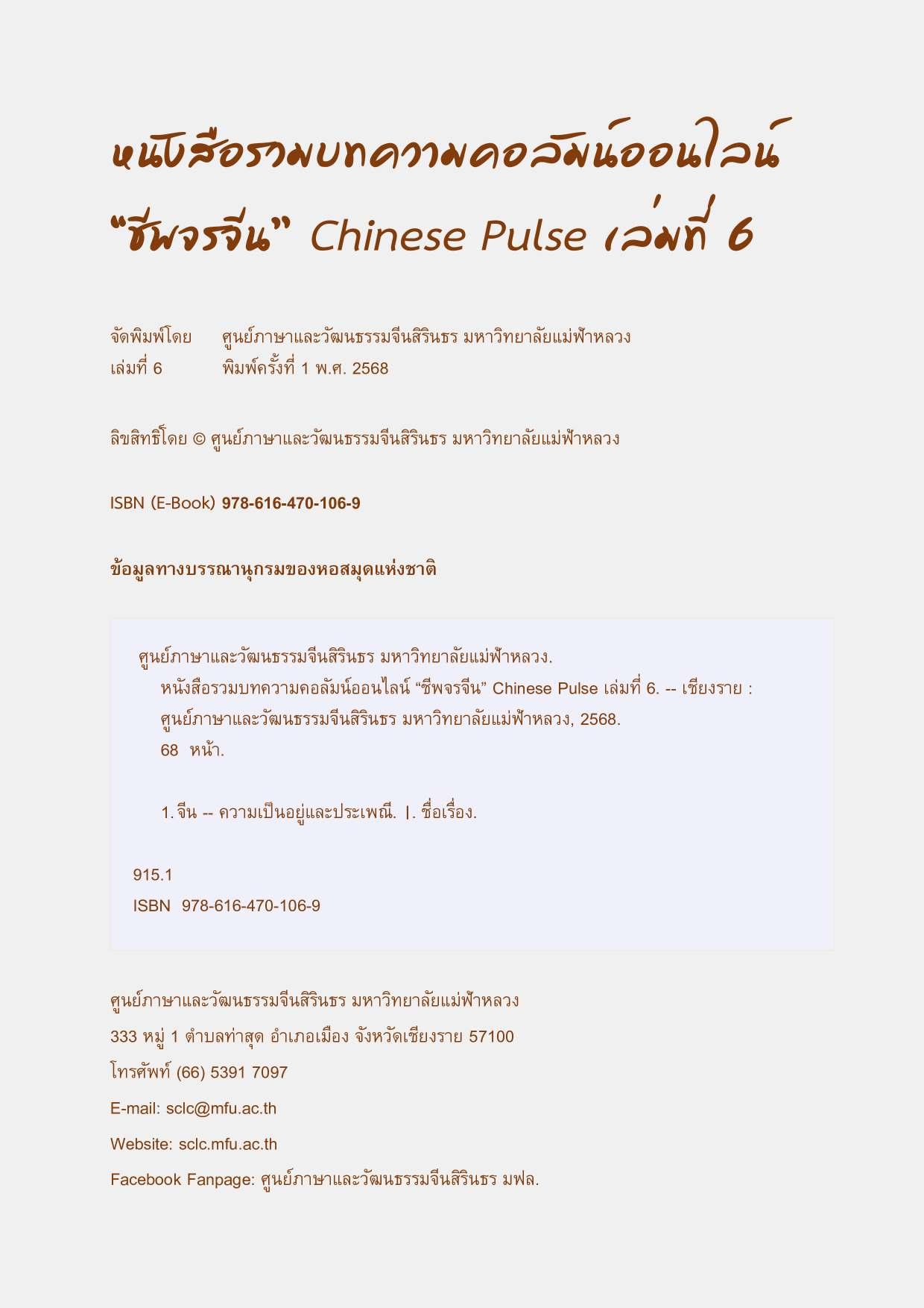 Chinese Pulse #6 หนังสือรวบรวมบทความคอลัมน์ออนไลน์ ชีพจรจีน เล่มที่ 6