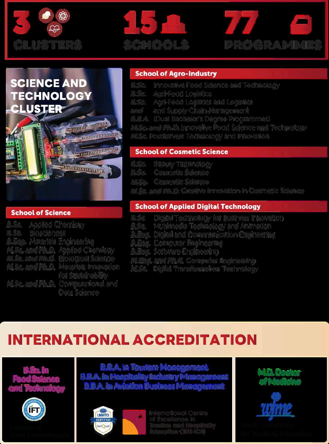 Mae Fah Luang Unviersity's campus consists of a large complex of modern, state-of-the-art buildings, spanning more than 800 hectares. The campus is located in a spectacular setting of mountains and trees, an environment conducive to teaching and learning in a clean, inviting setting. As both a regional and national university, MFU provides high-quality education services and resources for the neighboring countries of the Greater Mekhong Sub-region (GMS), and reaches out to all of Southeast Asia.