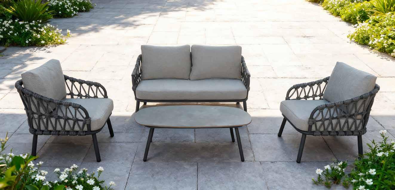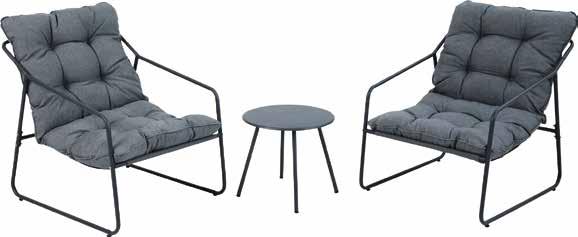 Genua structure métal anthracite, coussins tissu oléfine anthracite, fauteuil 65 x 79 x 81 cm, table basse Ø 43
