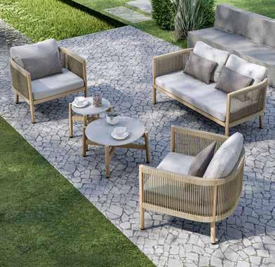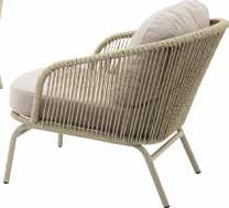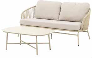 Ocean Gestell Metall pulverbeschichtet, mit Kunststoffschnüren bespannt, Kissen Spun-Polyester beige (waschbar), Sessel 75 x 74 x 83 cm, Bank 165 x 74 x 83 cm, Beistelltisch Sintered Stone beige 102 x 38 x