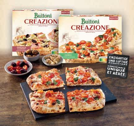 ingredienti breve e comprensibile. Se poi tutto è in armonia con il sapore, tutto è più gustoso. Un esempio riuscito è la nuova pizza CREAZIONE di Buitoni. Grazie all’umidità dell’impasto, la base rimane succulenta senza perdere la sua croccantezza.