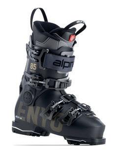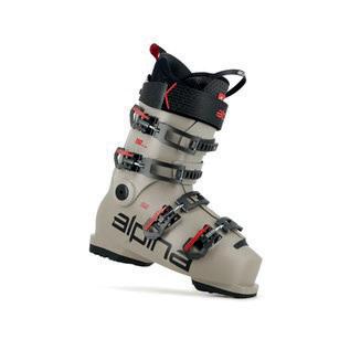 Jednodílná celokarbonová platforma a manžeta, rozdělená závodní podrážka s přední částí a patou přilepenou k platformě, anatomická, ultralehká a závodní vnitřní botička a prodyšným, vodoodpudivým a ultralehkým krytem Alpina Elite.