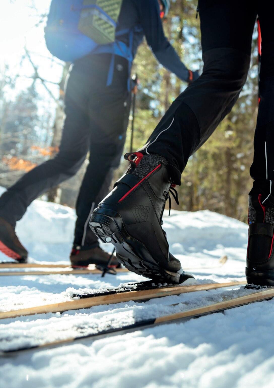 Běžecké lyžování vyžaduje různé úrovně podpory kotníku. Pro bruslařskou techniku je nezbytná silná boční (laterální) podpora pro maximální výkon, klasické lyžování těží z flexibility kotníku. Obuv kategorie Combi nabízí univerzálnost pro obě techniky, přičemž ergonomicky navržené manžety zajišťují rovnováhu mezi tuhostí a pohodlím, což umožňuje optimální výkon napříč různými styly lyžování.