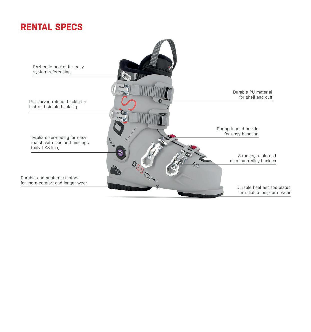 • Vyvážené pohodlí a ovladatelnost pro univerzální lyžování.