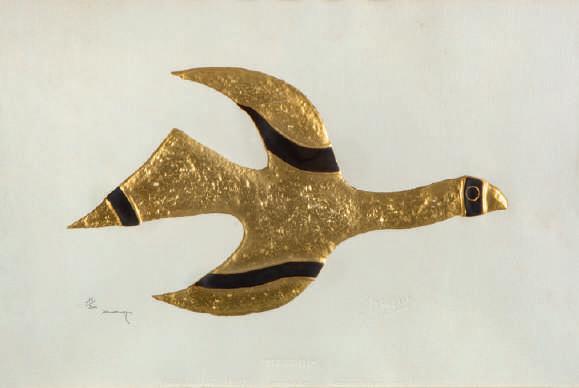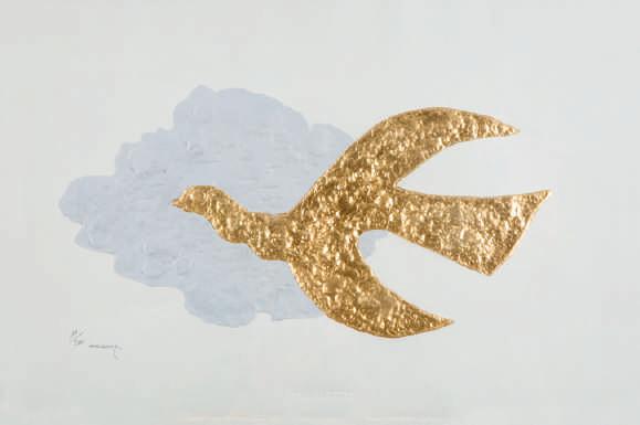 Embossage con goffratura in rilievo ed interventi con foglia d’oro su carta Arches.