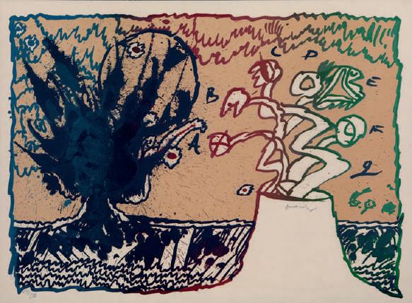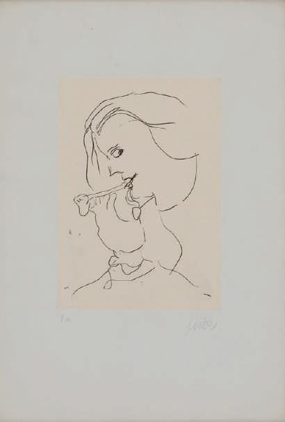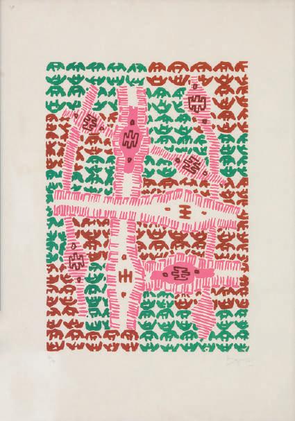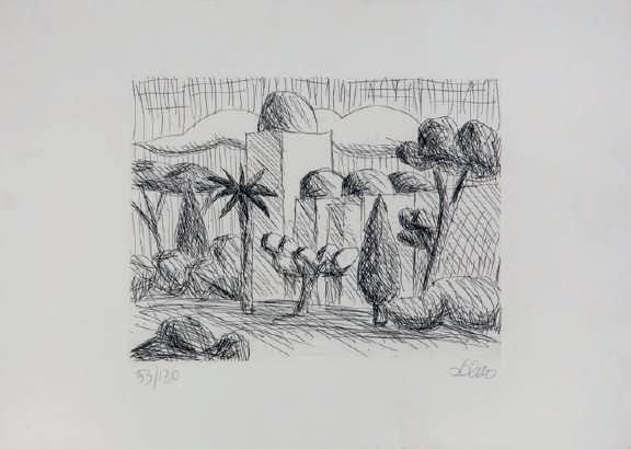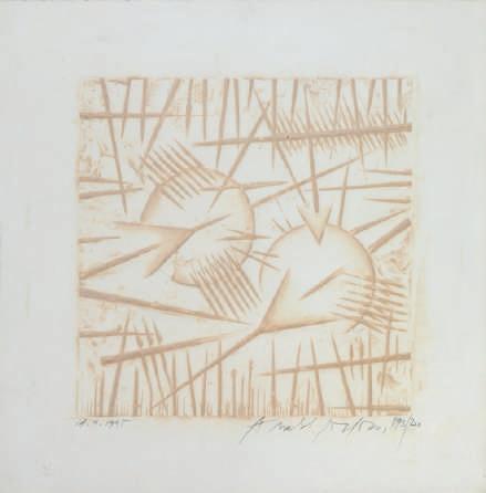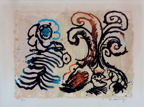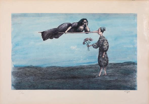 Senza titolo Litografia su carta. Firmata a mano e numerata E.A. cm 52x36, cornice cm 72x55 Val.: € 300 / 600