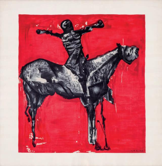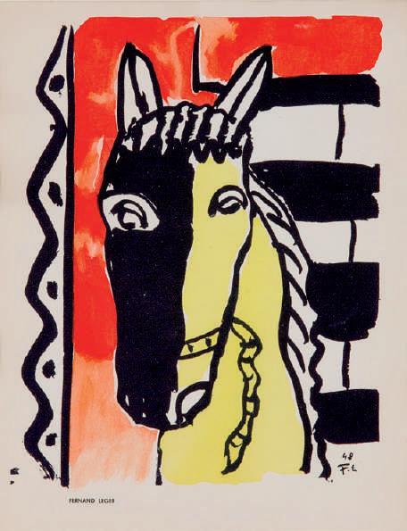 Cheval sur fond rouge 1951 Pochoir su carta. Monogrammato in lastra e datato 1948 (data dell’opera originale) sul fronte.