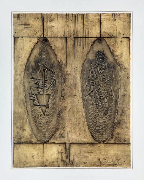 Timbri a secco di titolo, tecnica di realizzazione e autore. cm 37x55, cornice cm 58x76