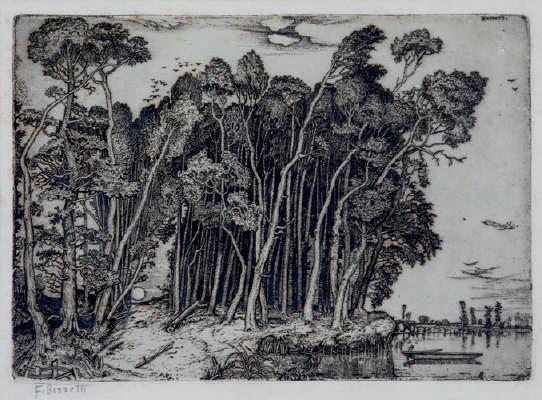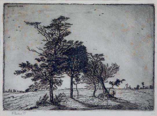 Acquaforte su carta I prova. Firmata e datata in basso a sinistra. Al retro etichetta originale Archivio Storico Italo Cremona con numero di inventario IP 62. cm 16,7x20,3, supporto cm 19x27 Val.: € 200 / 400