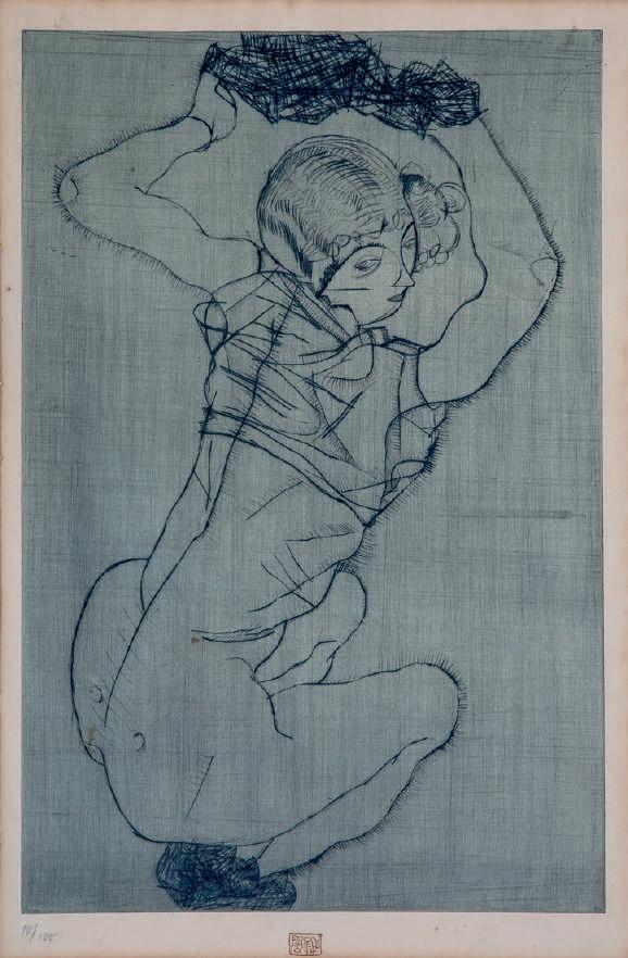 3 Egon Schiele Nudo femminile Litografia. Tiratura 10/100. Logo dell’artista e numerazione a matita. Etichetta Galleria Fogliatto, Torino. cm 52x34, cm 72x54 Val.: € 1.000 / 2.000