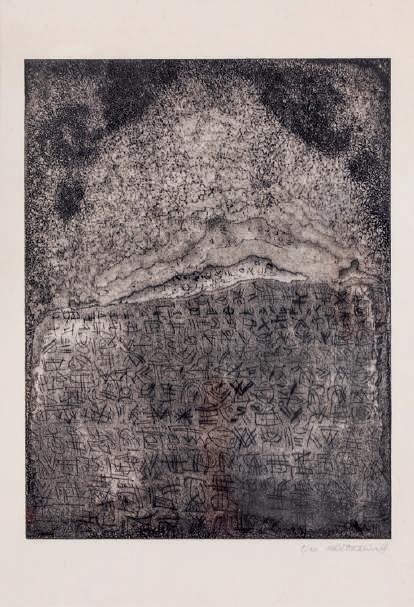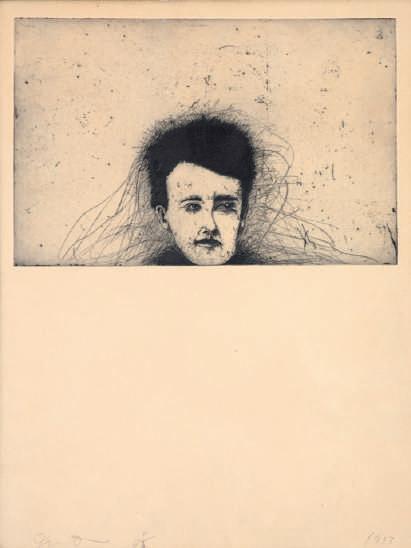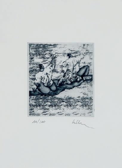 Acquaforte su rame. Firmata e datata in lastra e firmata a mano in basso a sinistra. cm 22x29, cm 36x44