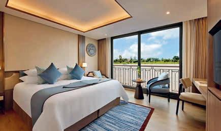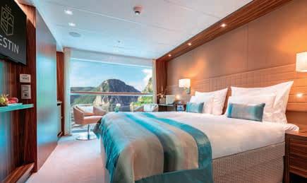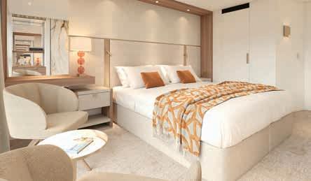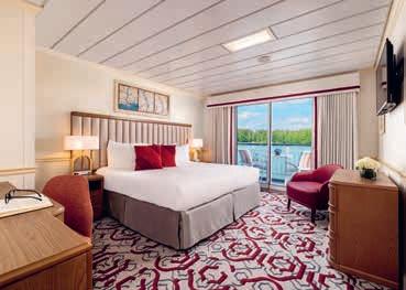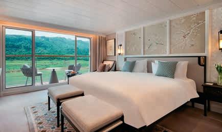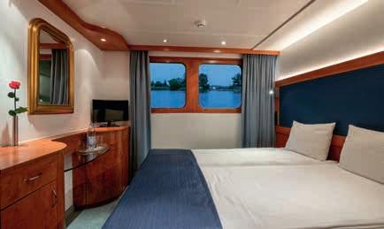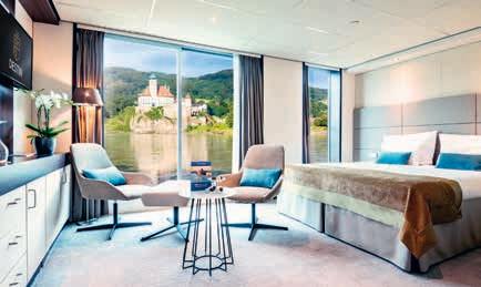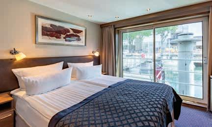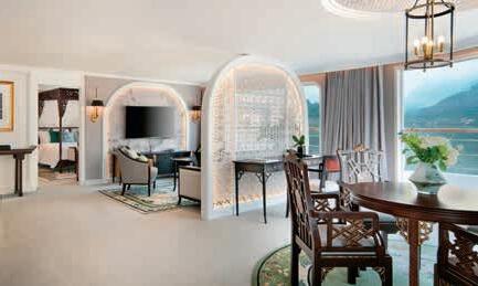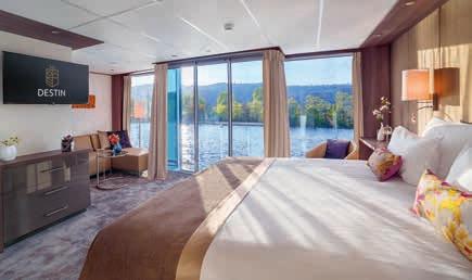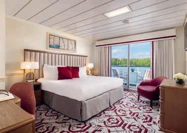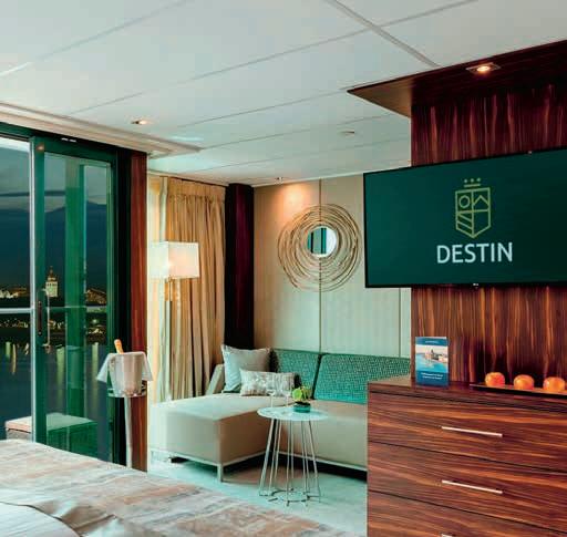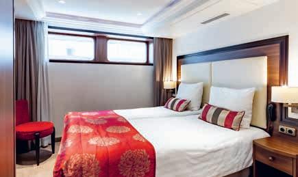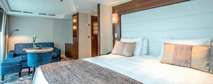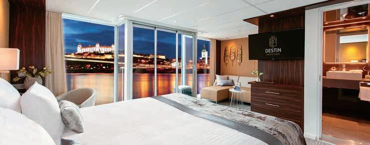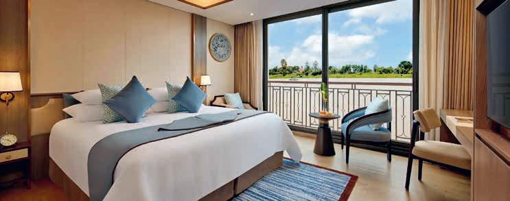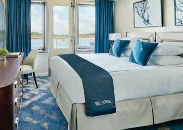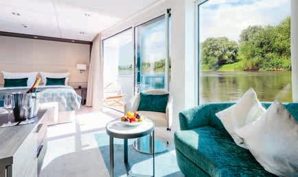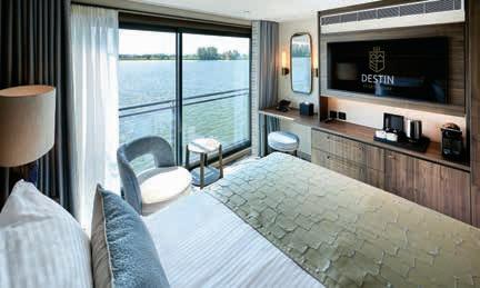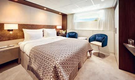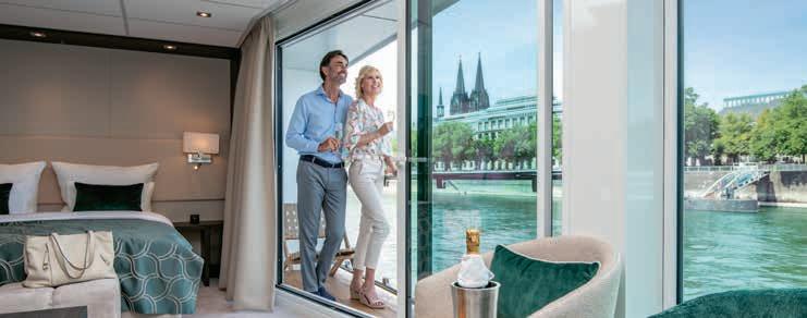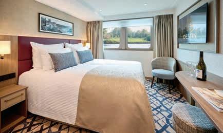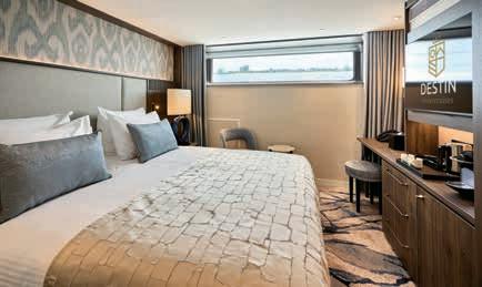 Aan boord van uw hotelschip verblijft u in stijlvolle Deluxe suites (31 m²), een rustgevende plek waar comfort, elegantie en verwennerij samenkomen. Elk van de 74 ruime suites beschikt over een ruim privébalkon met panoramisch uitzicht op de rivier. U geniet van persoonlijke service, verfijnde extra’s en exclusieve toegang tot lounges en restaurants.