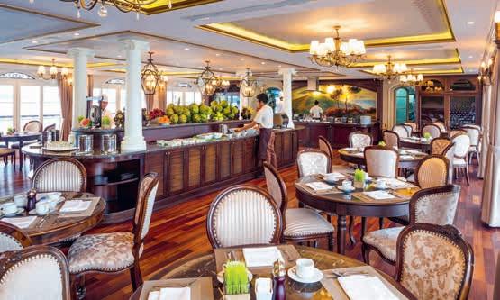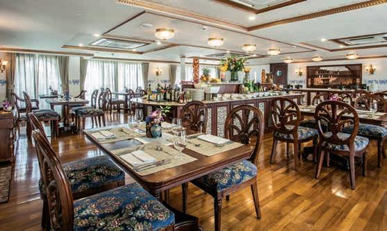 In het luxe panoramarestaurant van hotelschip Mekong Navigator geniet u van de uitstekende volpension verzorging en de voortreffelijke diners met oriëntaalse specialiteiten. Tijdens uw luxe cruise zijn tevens diverse drankjes inbegrepen. De bemanning staat dag in dag uit voor u klaar om uw verblijf zo comfortabel mogelijk te maken. U maakt uw Mekong cruise met internationaal gezelschap. U kunt gratis gebruik maken van wifi in alle gemeenschappelijke ruimtes.