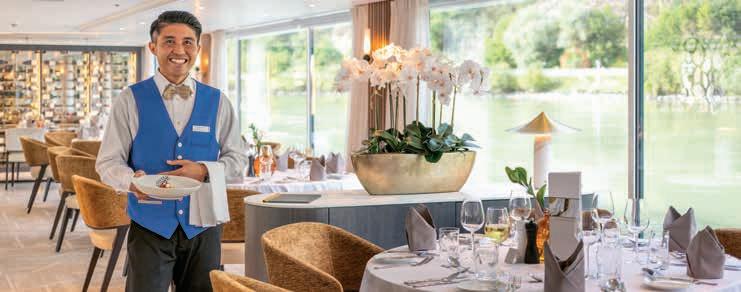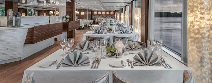 Elke dag kunt u zelf kiezen aan welke tafel in het restaurant u plaatsneemt voor het ontbijt, lunch of diner. Het is niet mogelijk om een tafel te reserveren. Voor onze groepsreizen in internationaal gezelschap werkt het net even iets anders: de hotelmanager reserveert voor het gezelschap van Destin Riviercruises een aantal tafels, waar u dagelijks uw eigen plekje kunt kiezen.