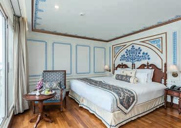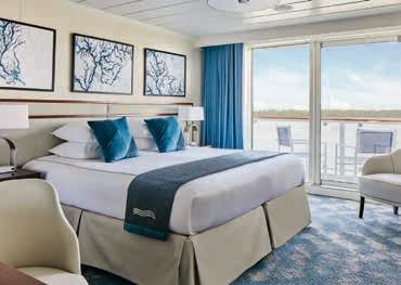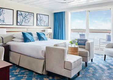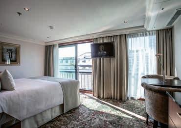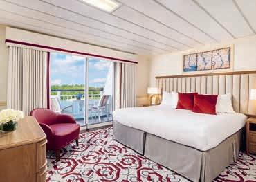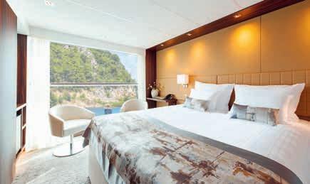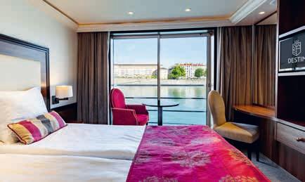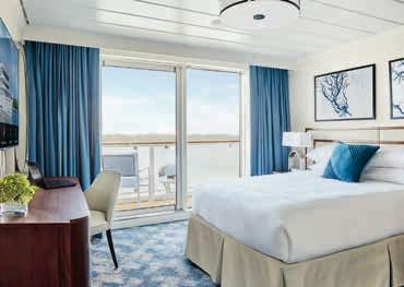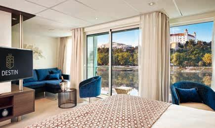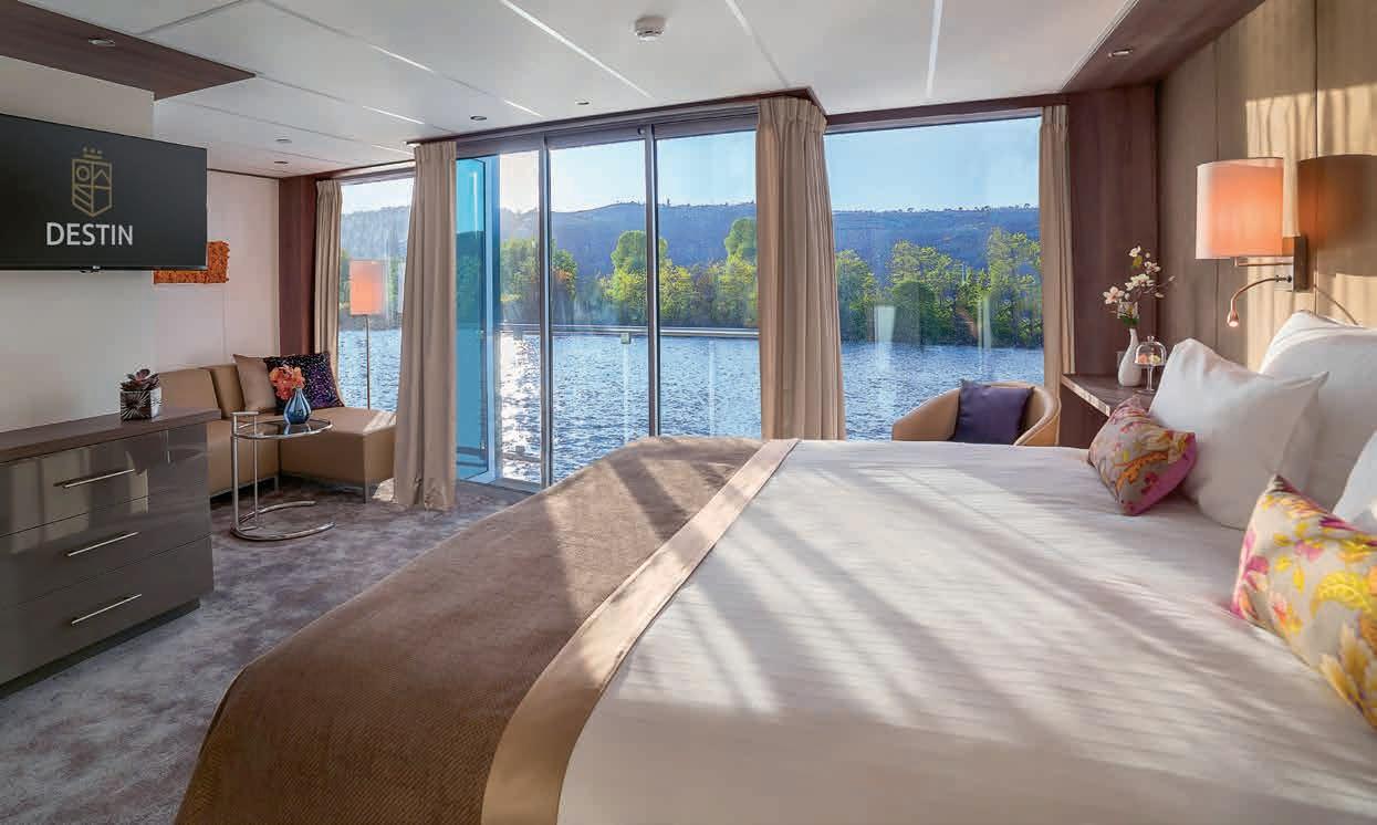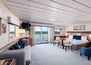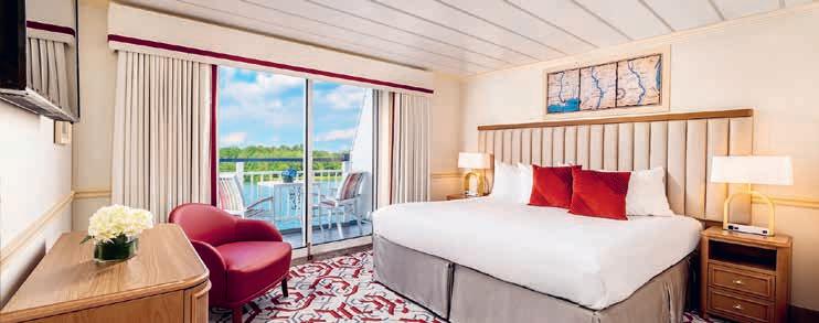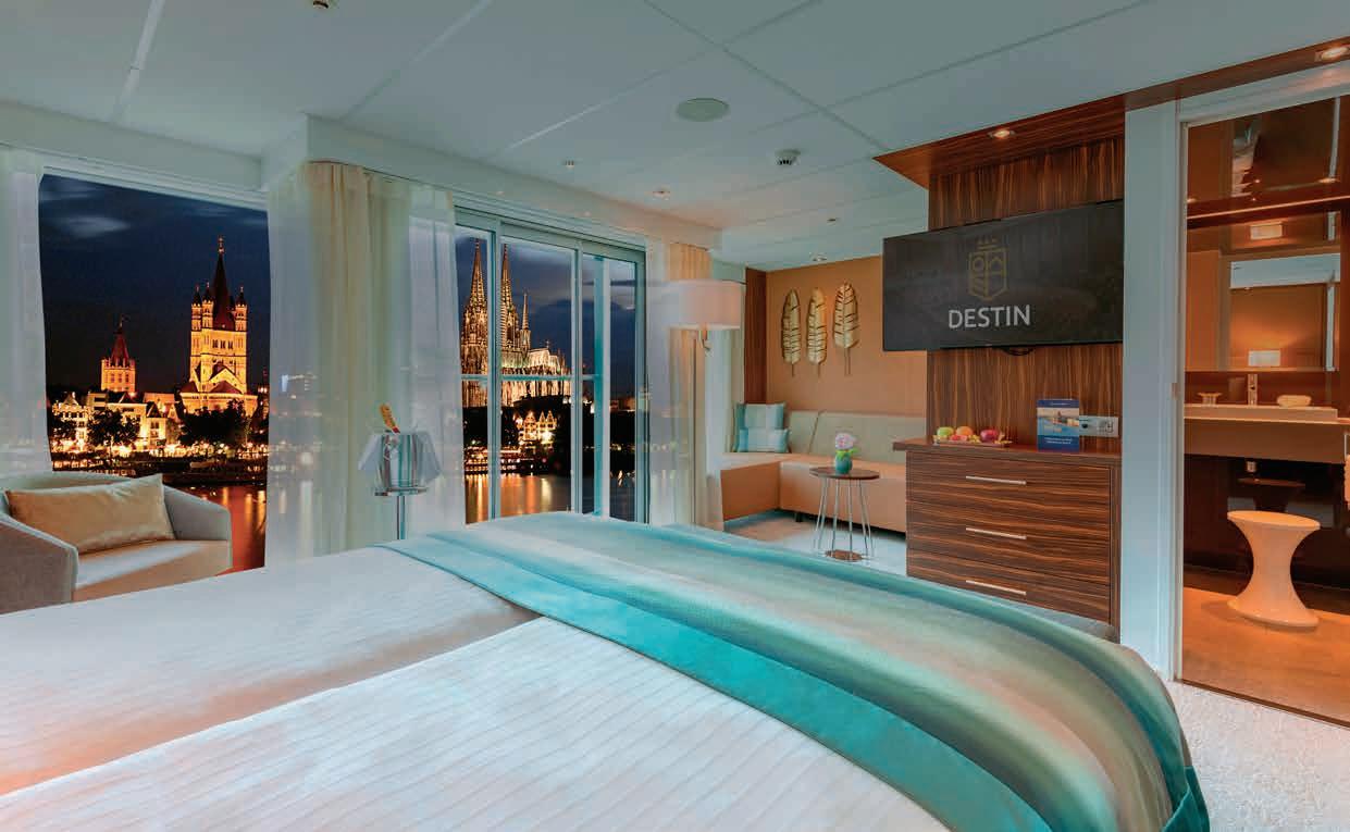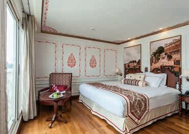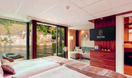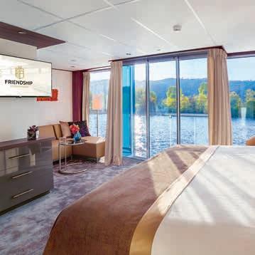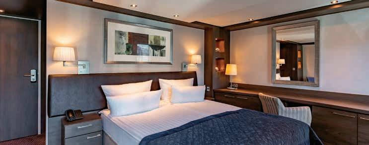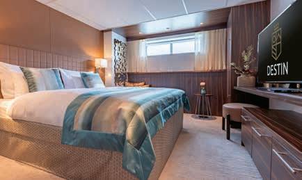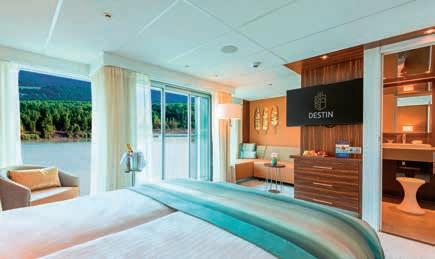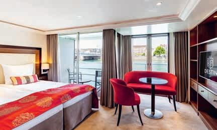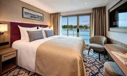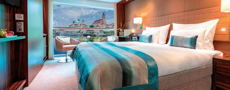 Aan boord van uw hotelschip verblijft u in stijlvolle Deluxe suites (31 m²), een rustgevende plek waar comfort, elegantie en verwennerij samenkomen. Elk van de 74 ruime suites beschikt over een ruim privébalkon met panoramisch uitzicht op de rivier. U geniet van persoonlijke service, verfijnde extra’s en exclusieve toegang tot lounges en restaurants.