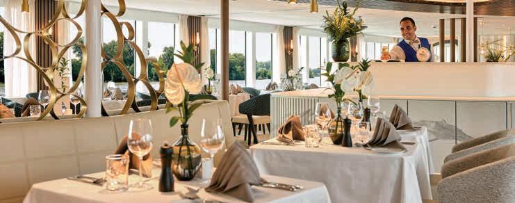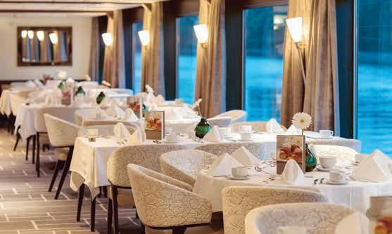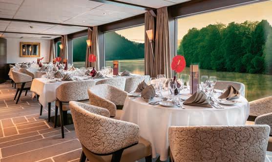 Elke dag kunt u zelf kiezen aan welke tafel in het restaurant u plaatsneemt voor het ontbijt, lunch of diner. Het is niet mogelijk om een tafel te reserveren. Voor onze groepsreizen in internationaal gezelschap werkt het net even iets anders: de hotelmanager reserveert voor het gezelschap van Destin Riviercruises een aantal tafels, waar u dagelijks uw eigen plekje kunt kiezen.