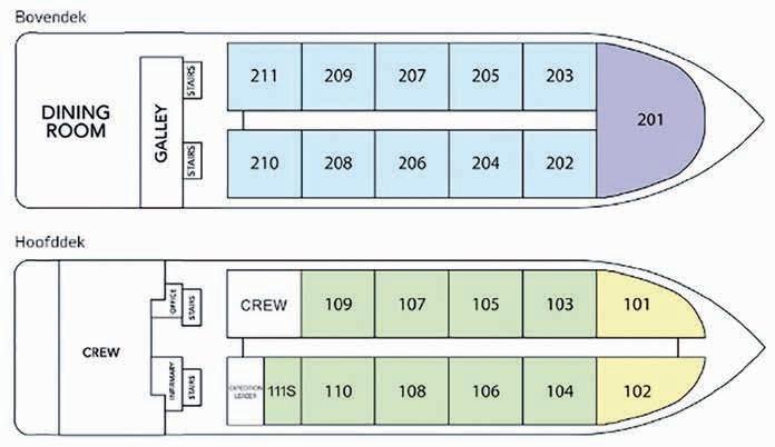 Reserveringen worden verwerkt op volgorde van binnenkomst. Kiest u ervoor om vroeg te boeken, dan resulteert dit vaak in een gunstiger gelegen cabine.