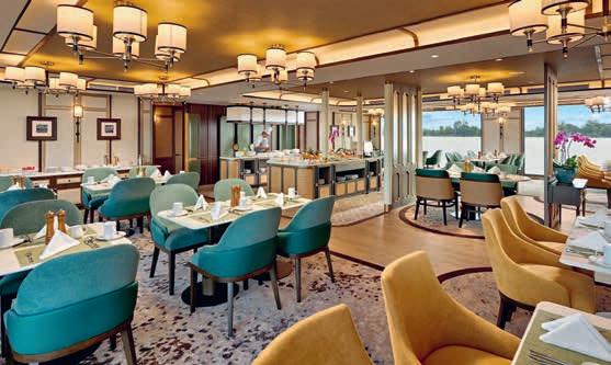 In het luxe panoramarestaurant van hotelschip Mekong Navigator geniet u van de uitstekende volpension verzorging en de voortreffelijke diners met oriëntaalse specialiteiten. Tijdens uw luxe cruise zijn tevens diverse drankjes inbegrepen. De bemanning staat dag in dag uit voor u klaar om uw verblijf zo comfortabel mogelijk te maken. U maakt uw Mekong cruise met internationaal gezelschap. U kunt gratis gebruik maken van wifi in alle gemeenschappelijke ruimtes.