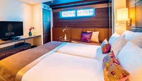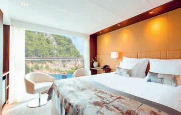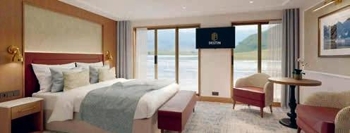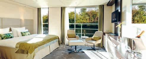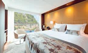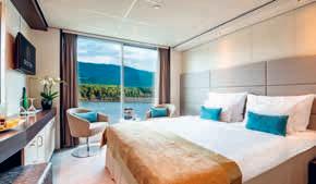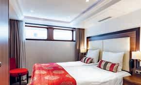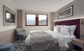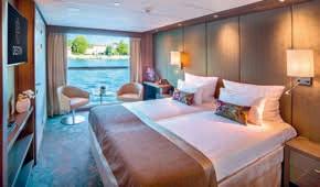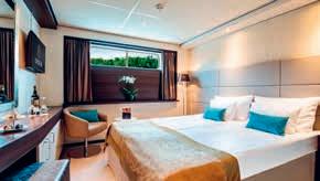 A- en B-cabines van 15 m² met panorama schuifpui en Frans balkon • Enkele 1-persoons cabines op het Middendek • Wellness faciliteiten met sauna • Er is een lift aanwezig tussen het Boven- en Middendek • Bouwjaar 2014 • Max. 150 passagiers